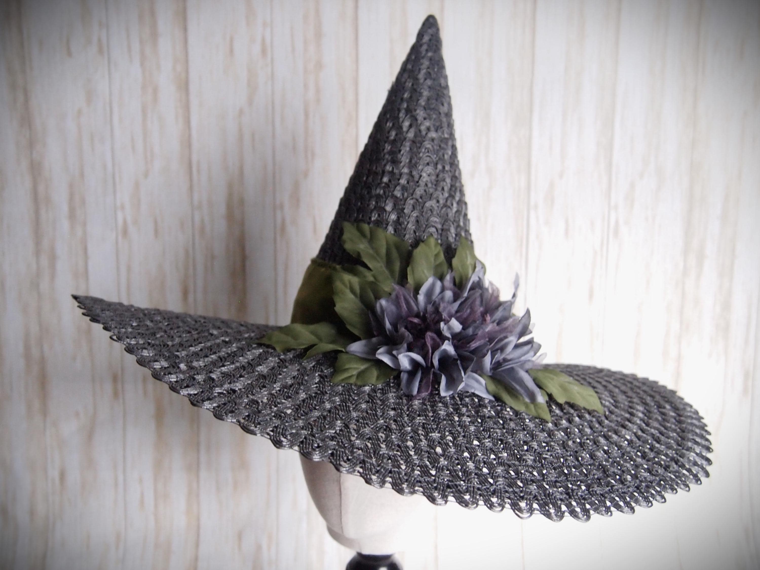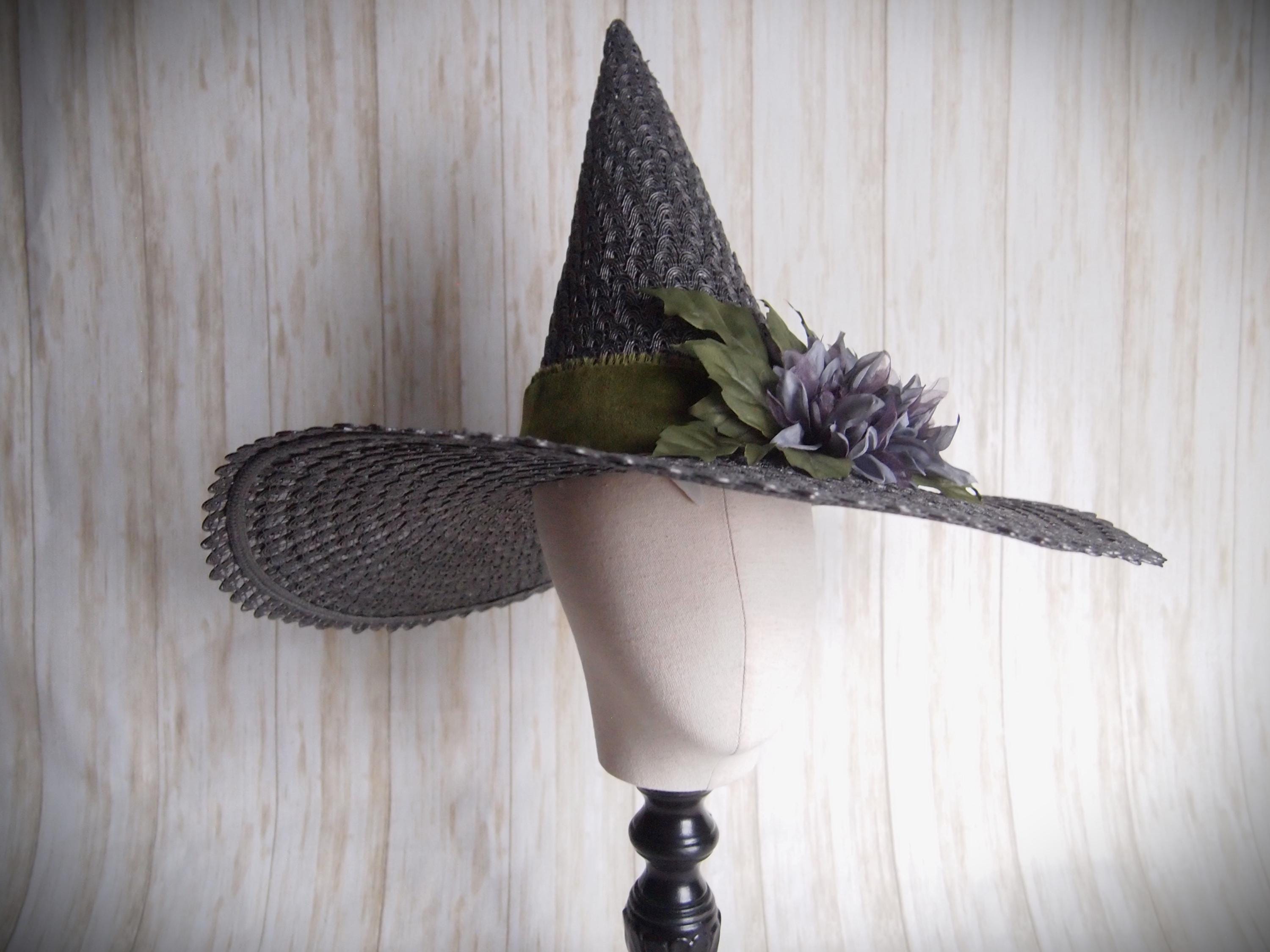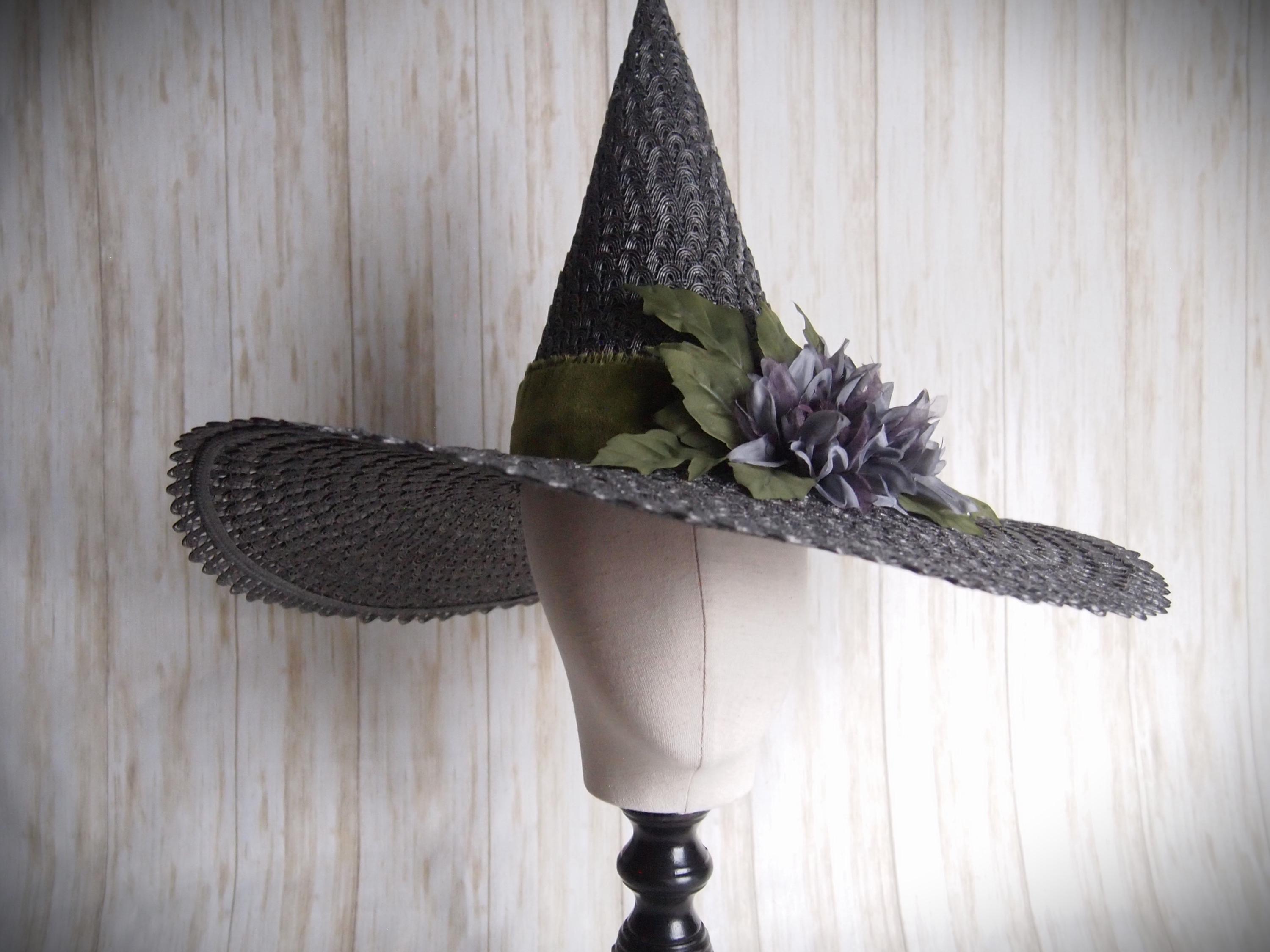 It has approx. 6.5" wide brim, and approx. 12" pointed peak.