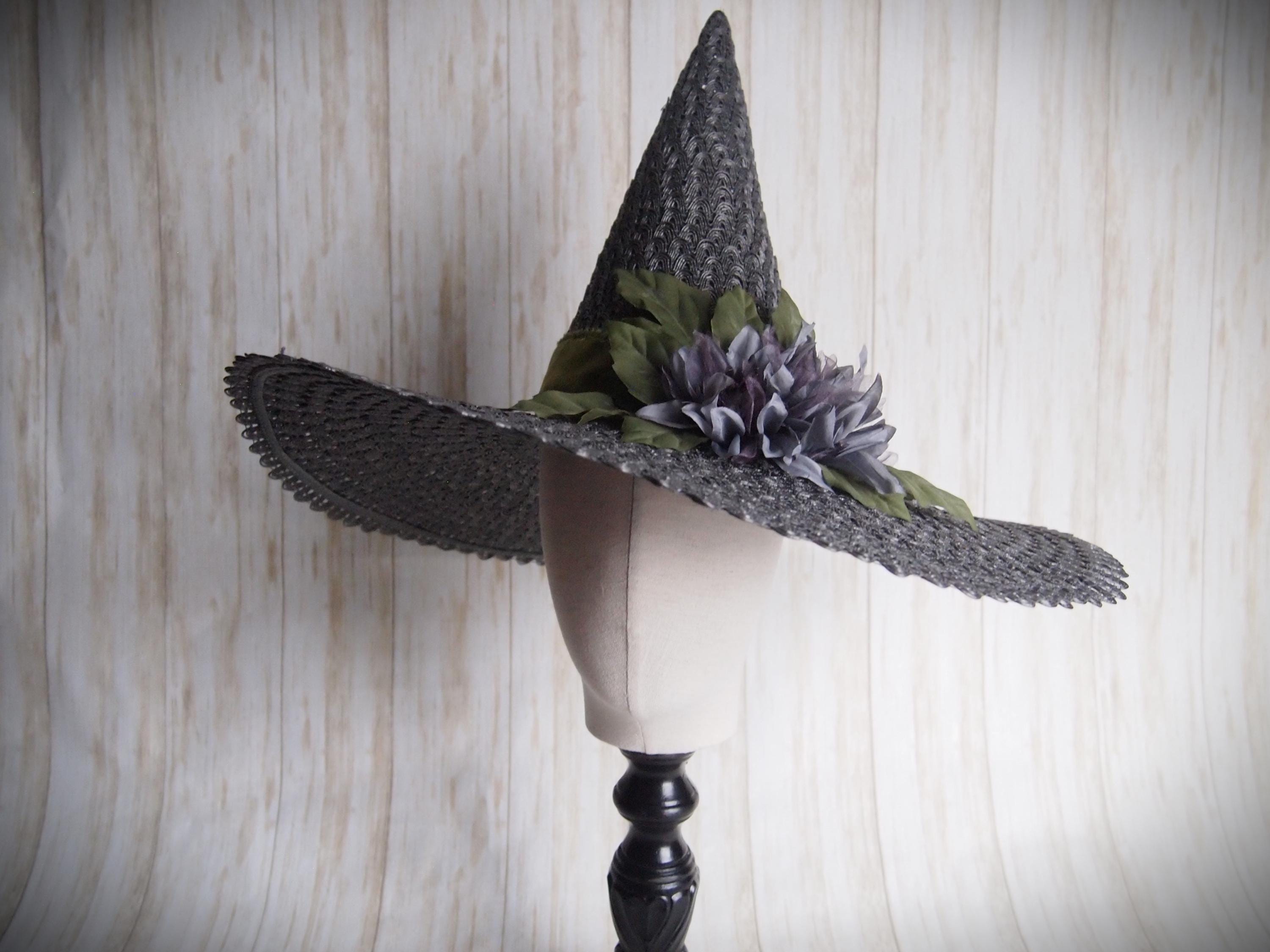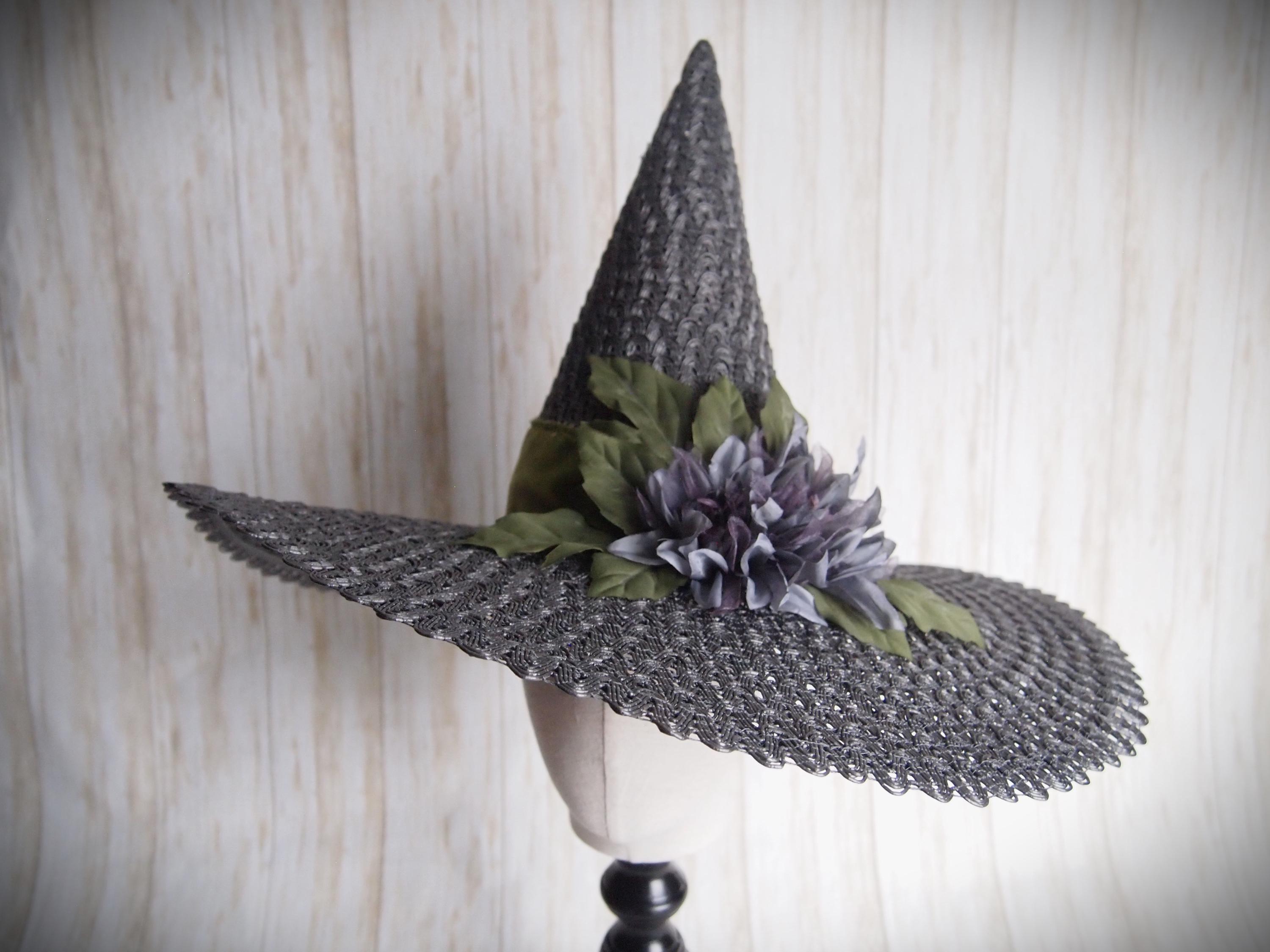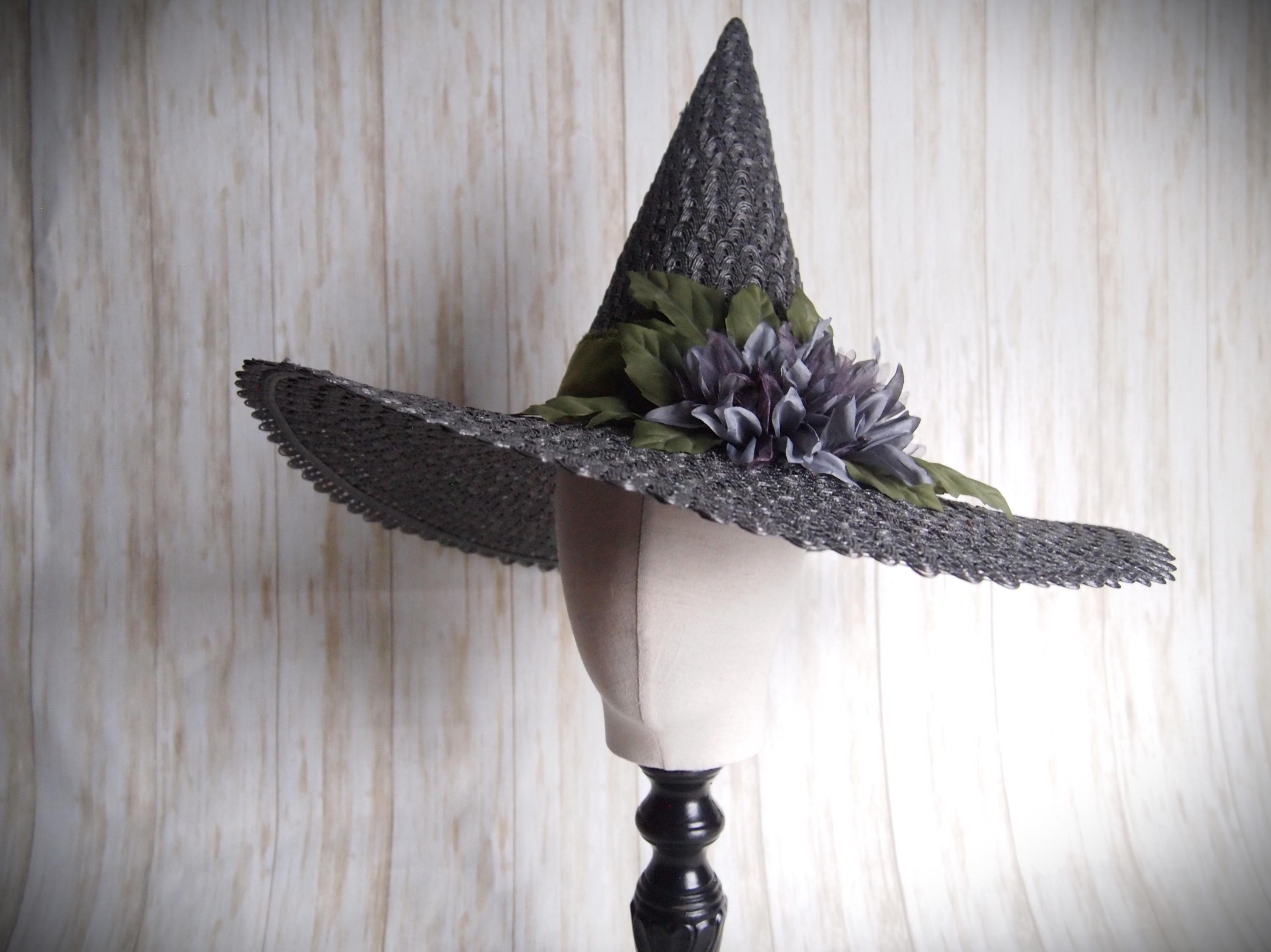 It has approx. 6.5" wide brim, and approx. 12" pointed peak.