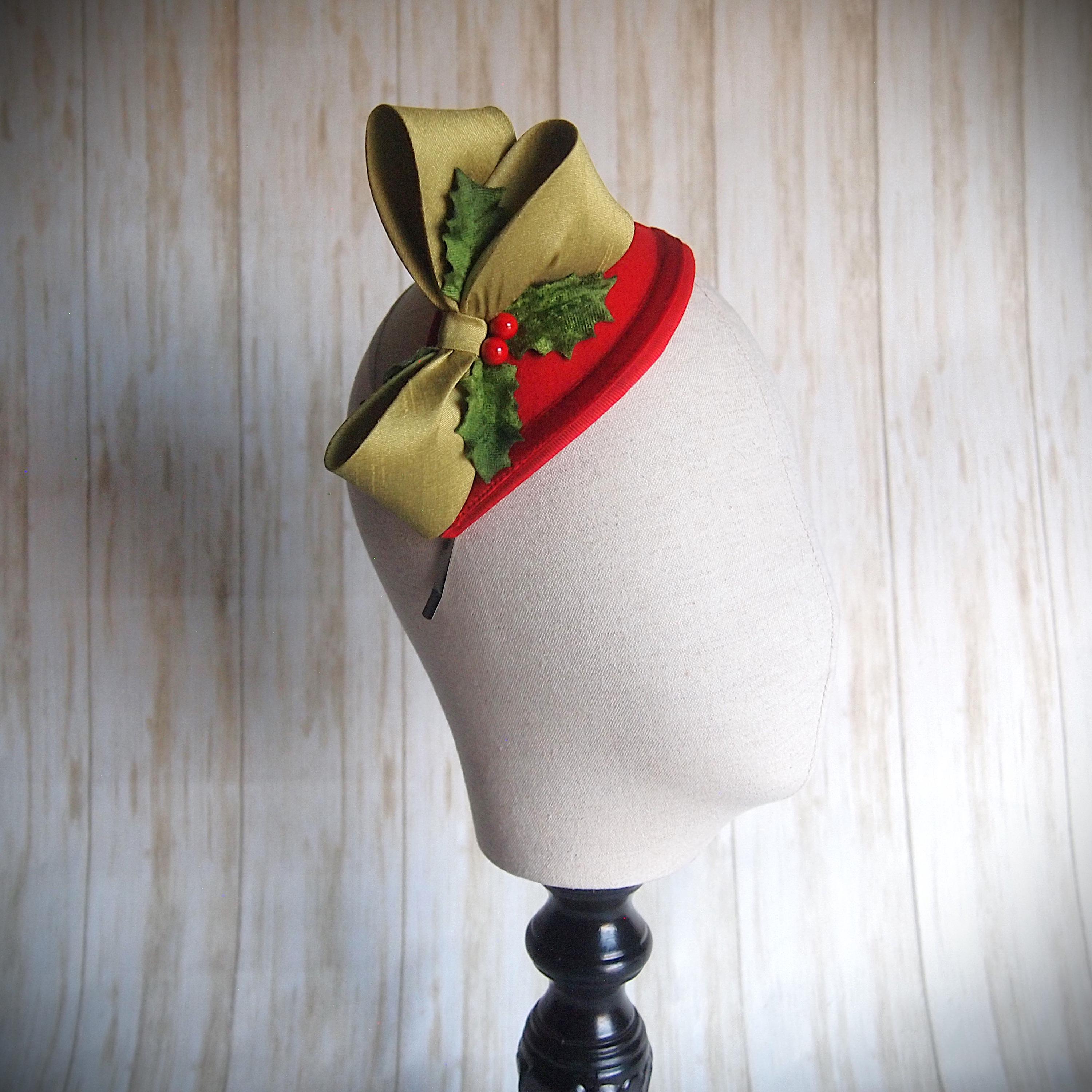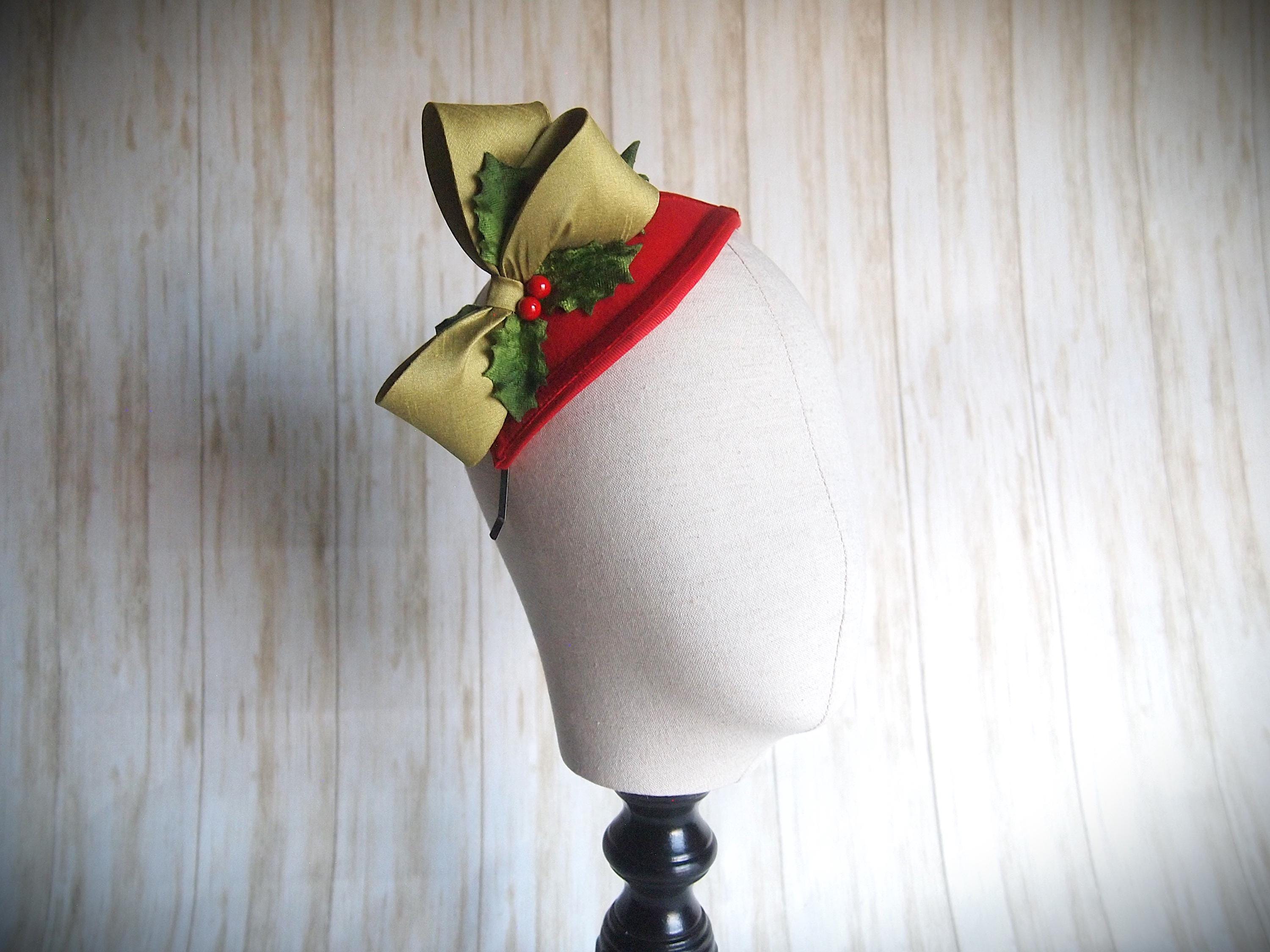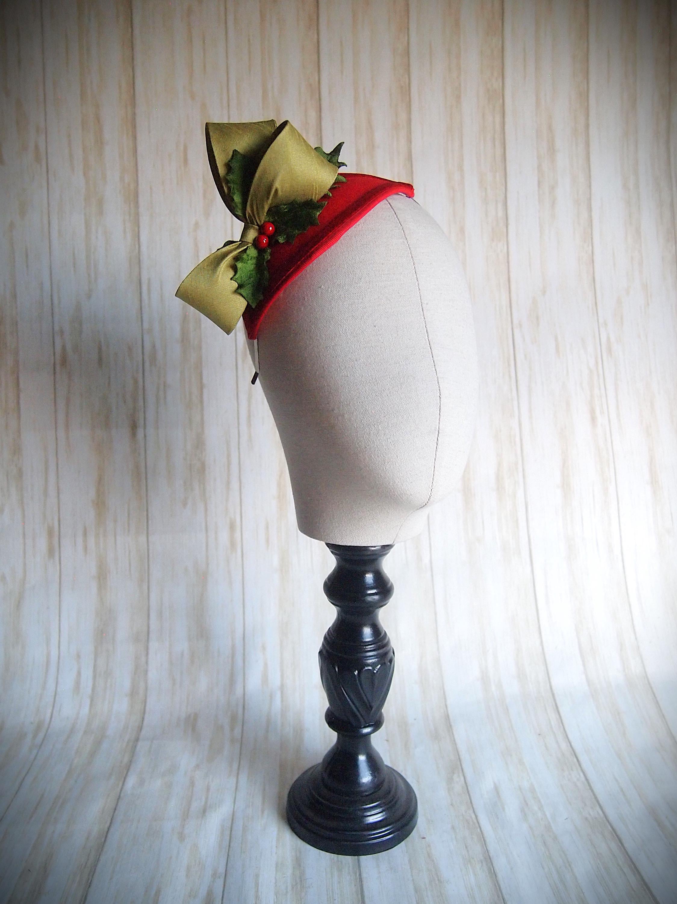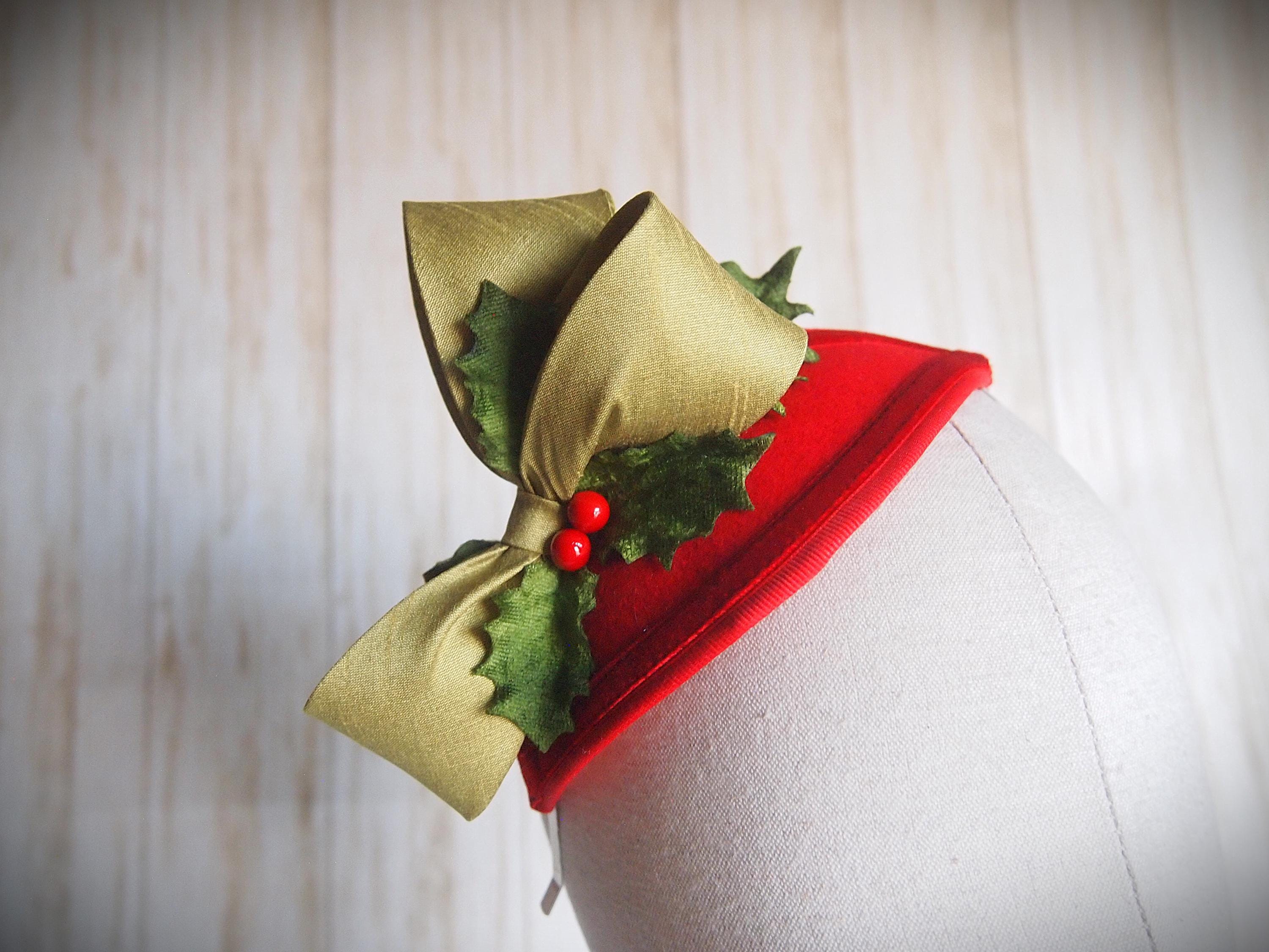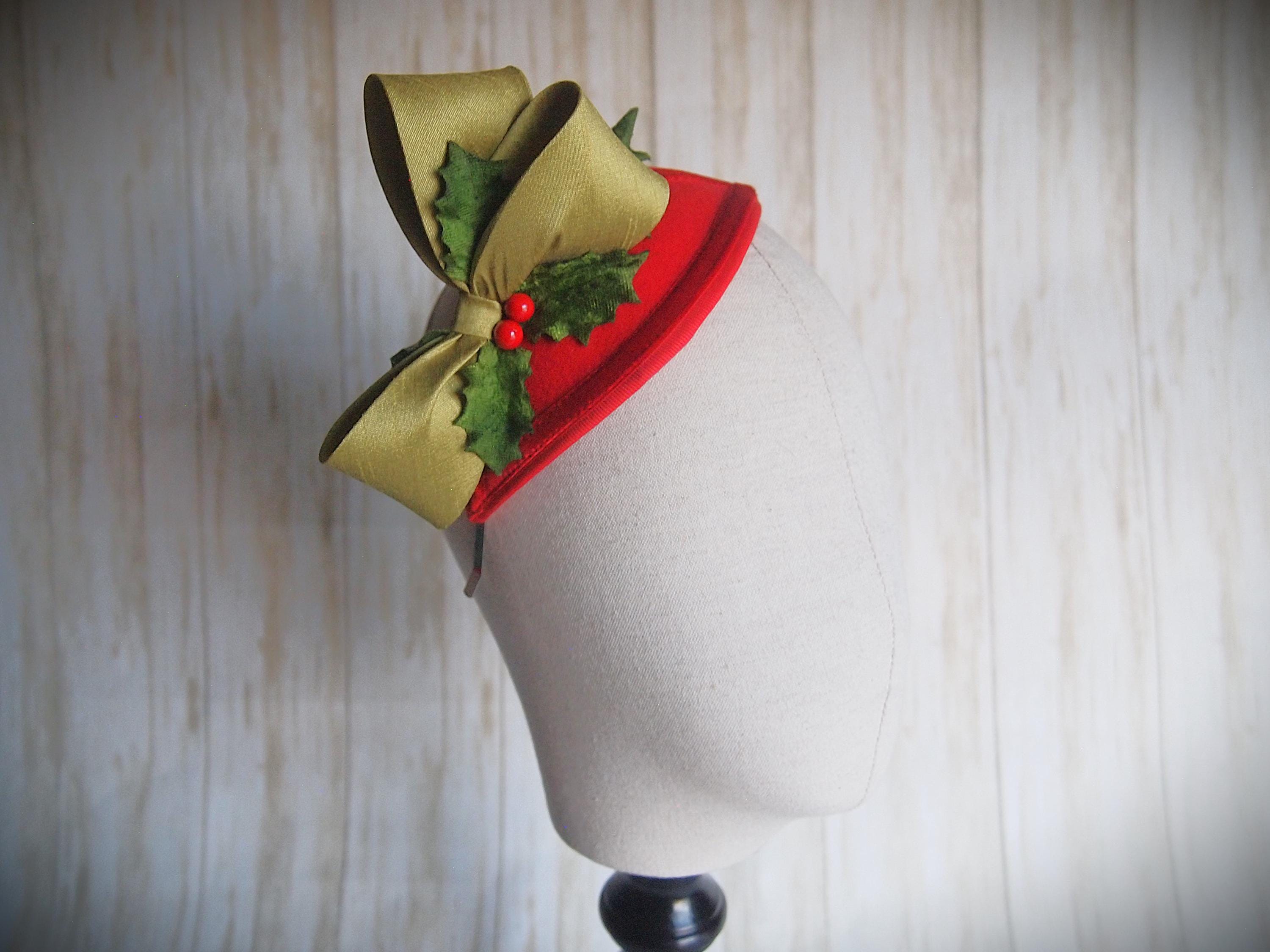 Made with a gold/green faux silk and velvet holly leaves on a red handmade wool felt base!