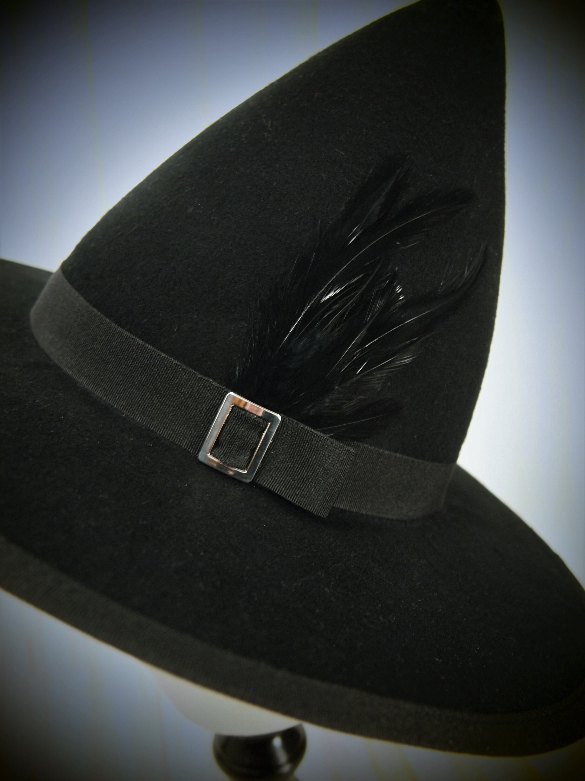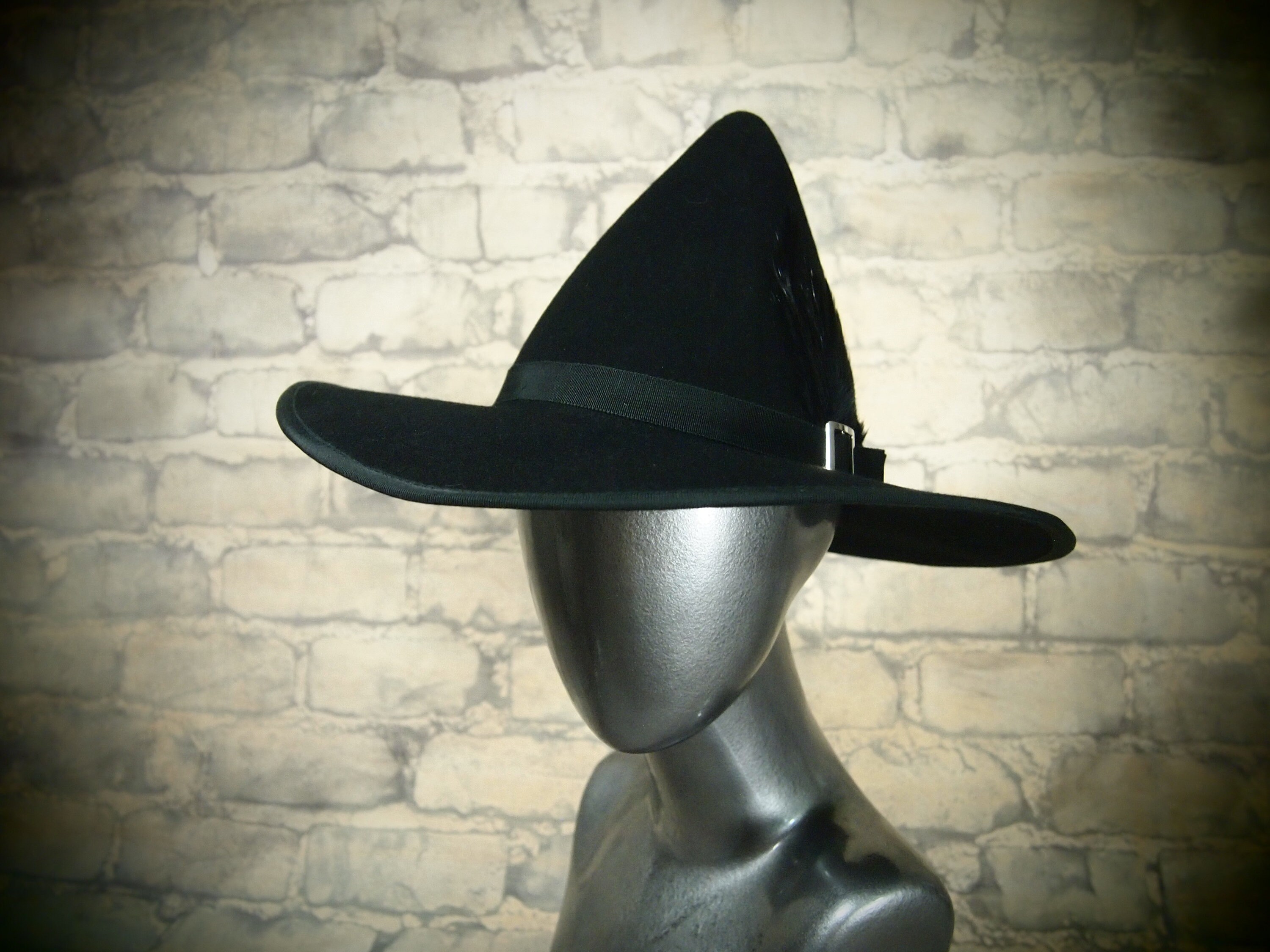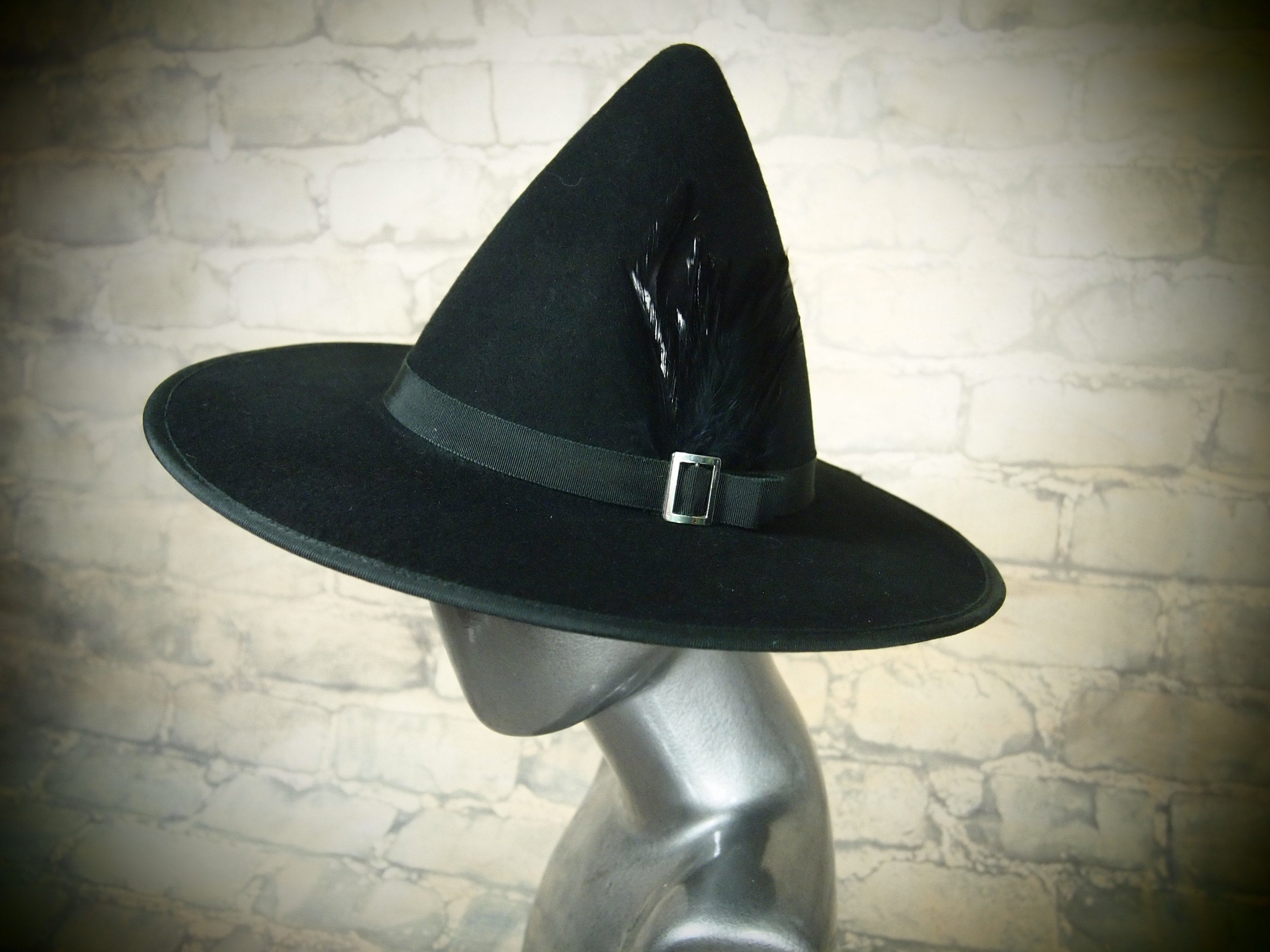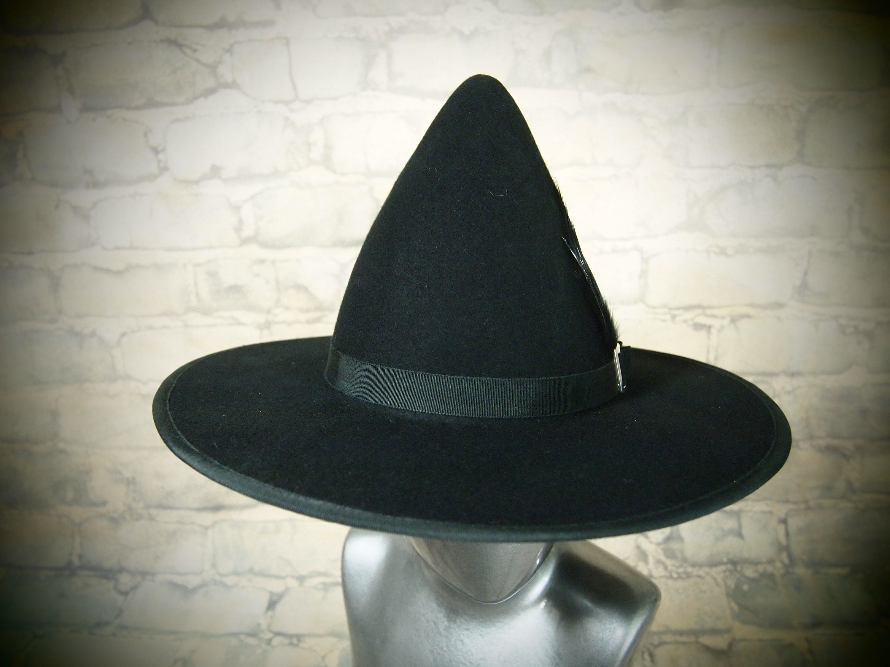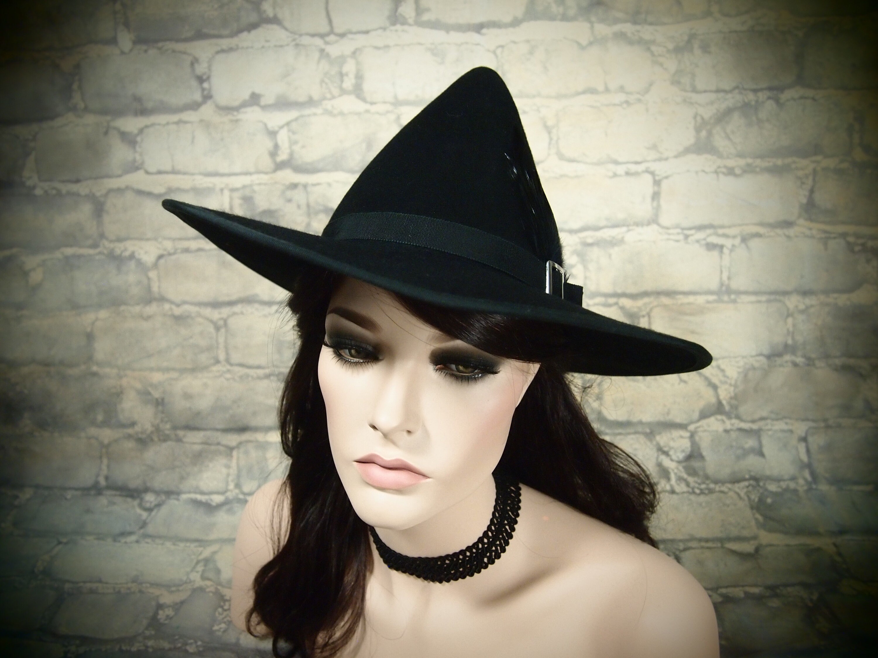 Every hat we offer is completely hand made by myself and my husband. We start by hand selecting the finest materials to craft into a base hat using traditional Milliners techniques. Yep! No flimsy hat bases! We then decorate each and every one into a work of art as unique as the Witch who wears it. We take pride in our work and create every piece with the love, care and Quality. We hope you enjoy our hats as much as we do!