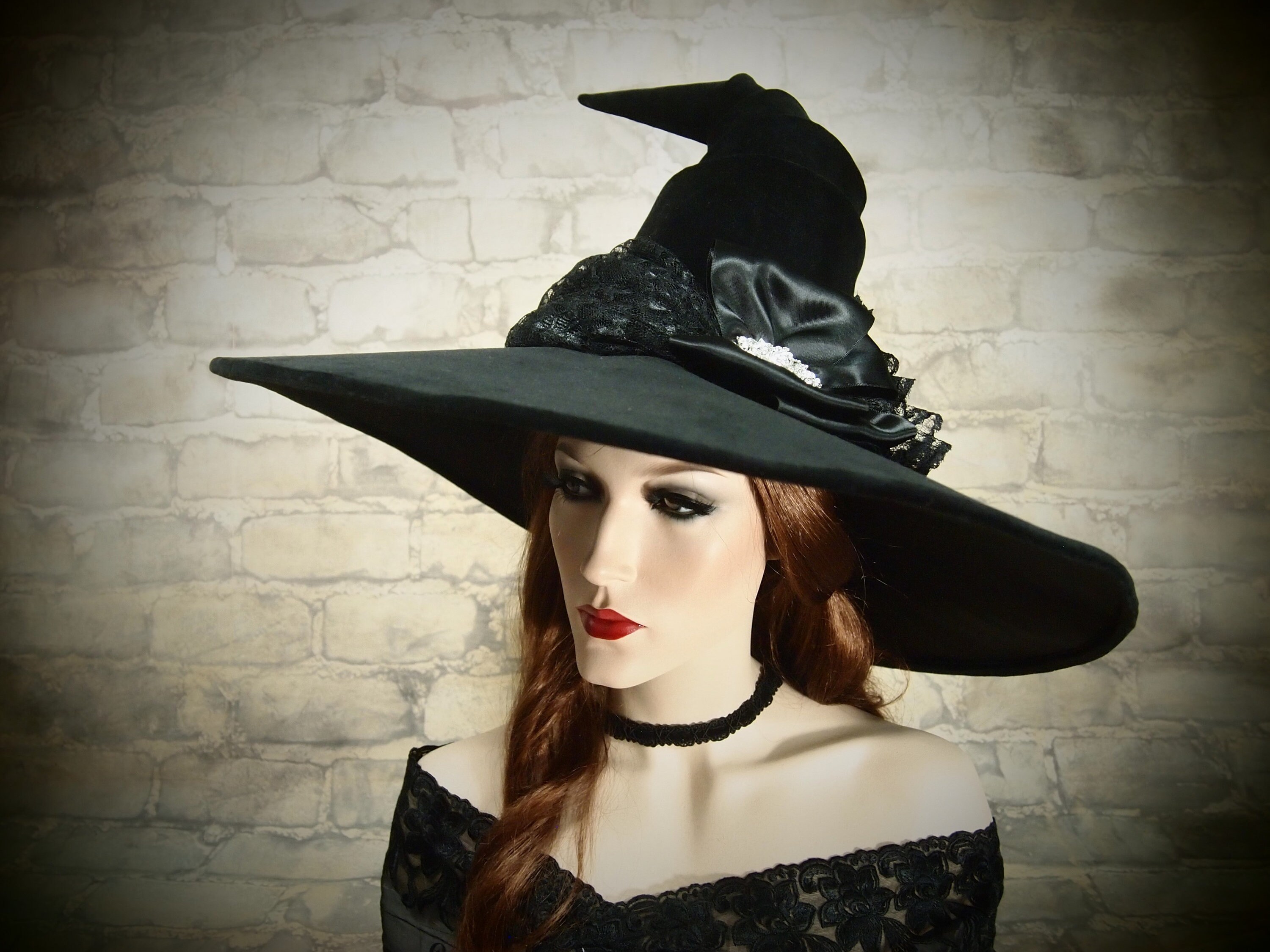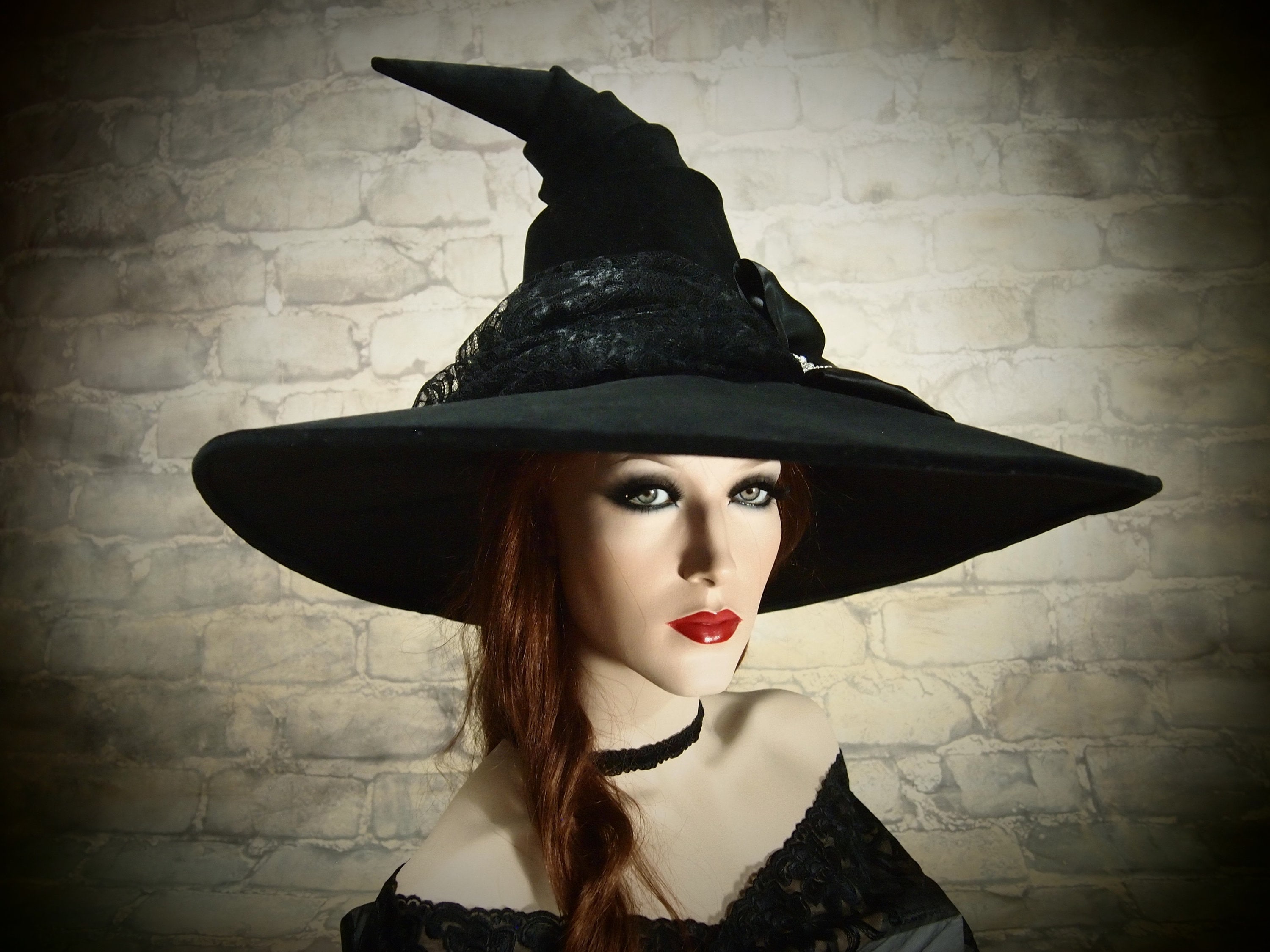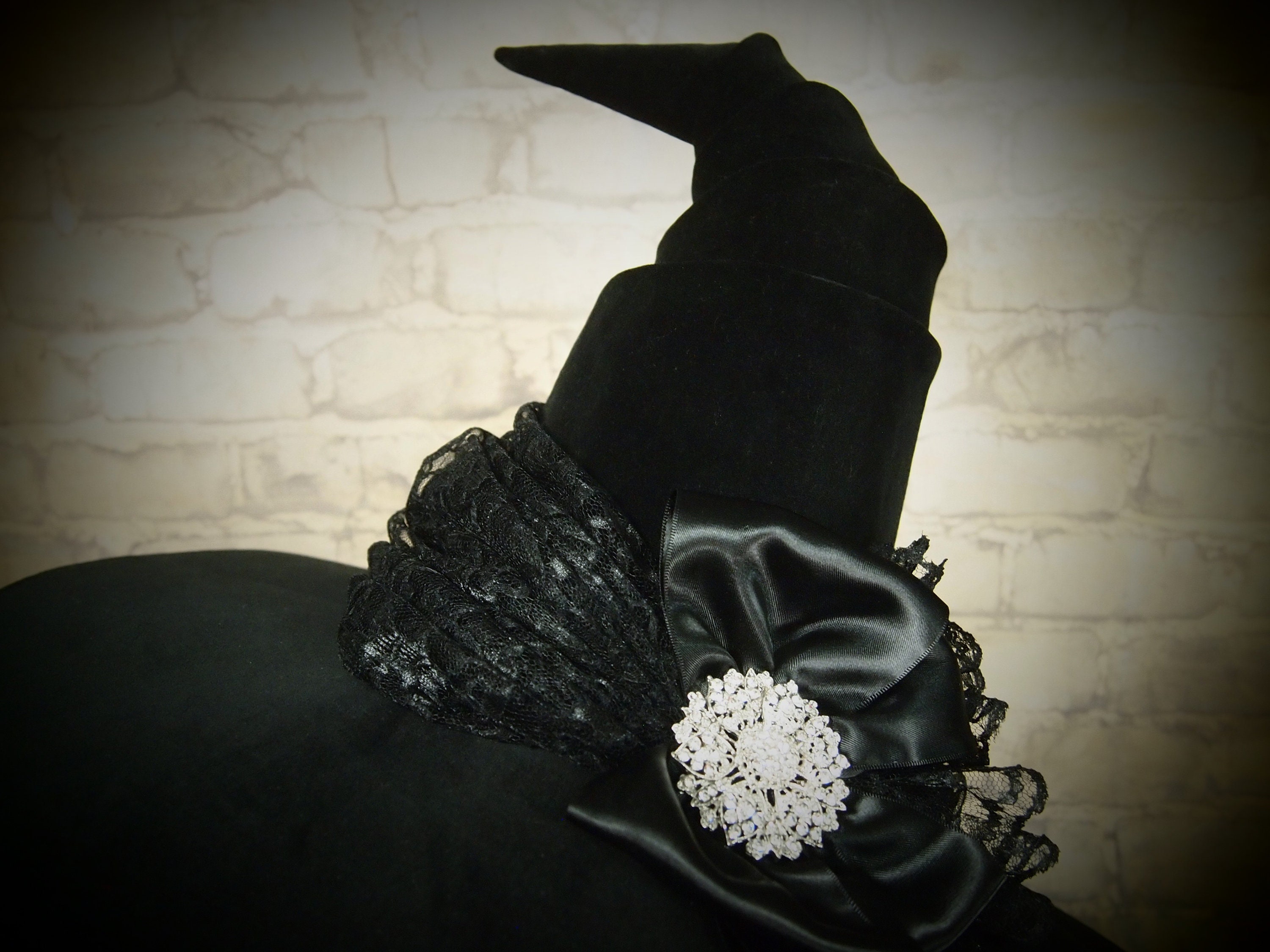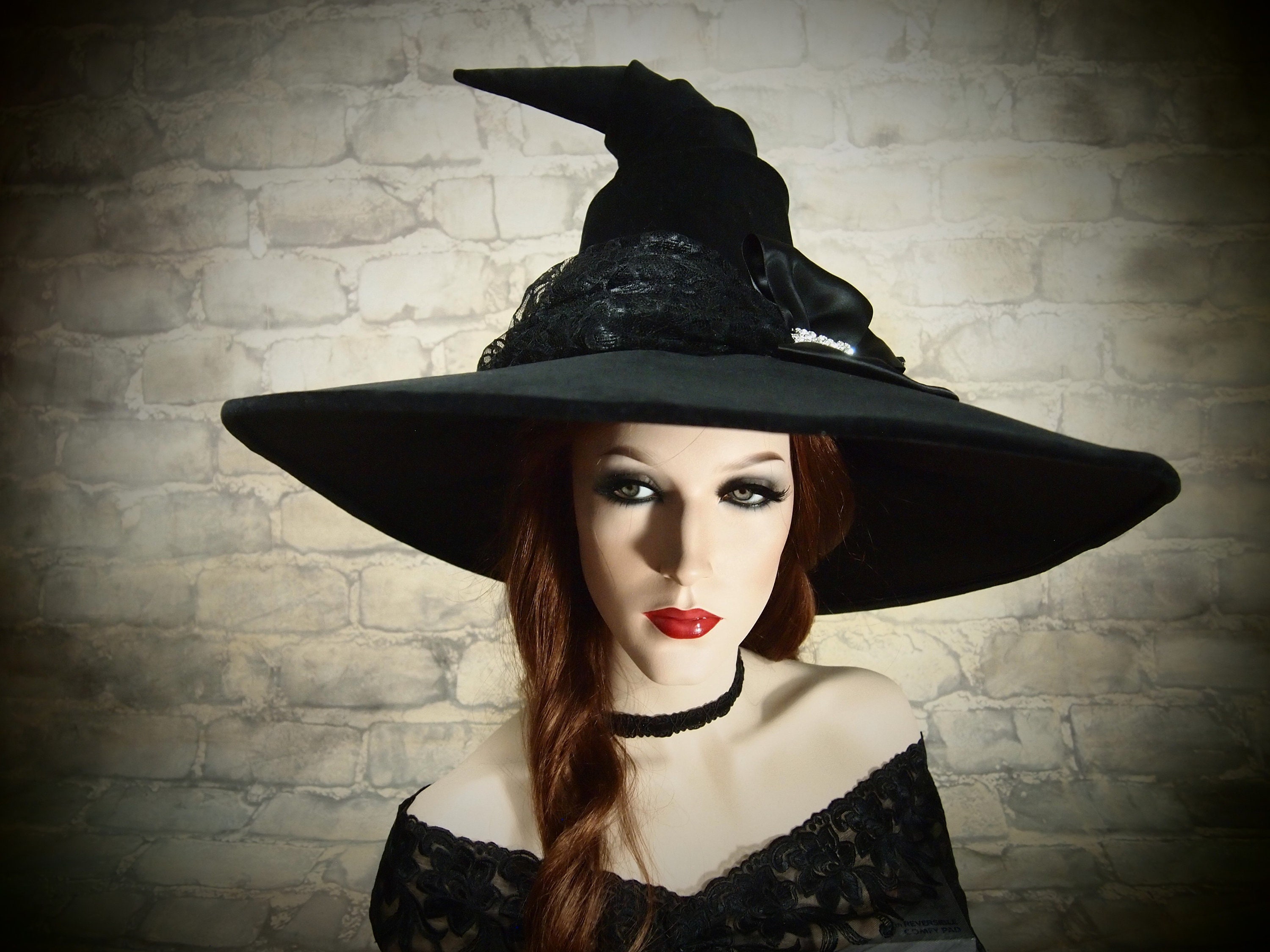Simply said, Quality. Don't be fooled by other hand made witch hats, my husband and I are fully trained Milliners and every hat we offer is made by us in our workshop. Our hat bases are designed and made (again, by us) completely from scratch with industrial level equipment and supplies to ensure the base hat is the highest quality and structure available. Our hats are sturdy, structured and keep their shape. Yep! NO FLIMSY HAT BASES! We then decorate each and every one into a work of art as unique as the Witch who wears it. We take pride in our work and create every piece with the love, care. We hope you enjoy our hats as much as we do!